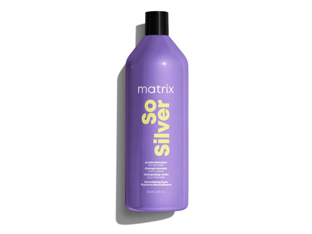 Matrix Total Results So Silver šampón je tónovací šampón určený pre blond, melírované, zosvetlené a šedivé vlasy, ktoré majú sklony k nežiaducim žltým, oranžovým a mosadzným odleskom. Obsahuje modrofialové pigmenty, ktoré pomáhajú neutralizovať teplé tóny a zároveň vlasy jemne čistia bez vysušovania.